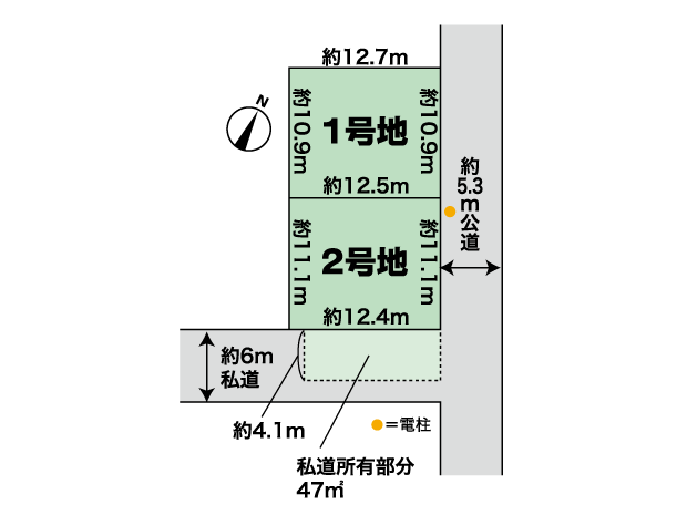 1号地:引込無、2号地:引込済