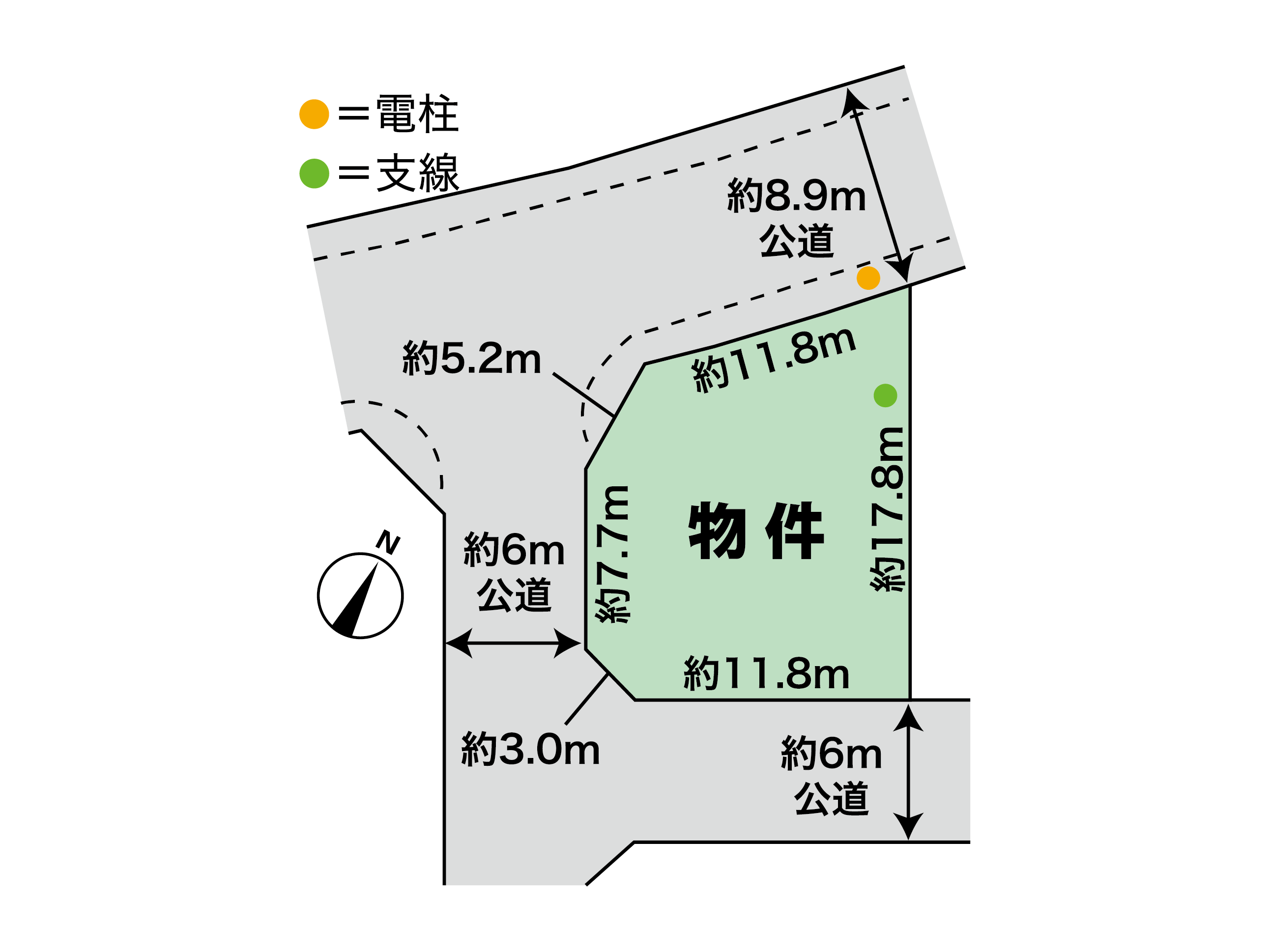 ※前面道路に電柱があります(敷地内に支線あり)